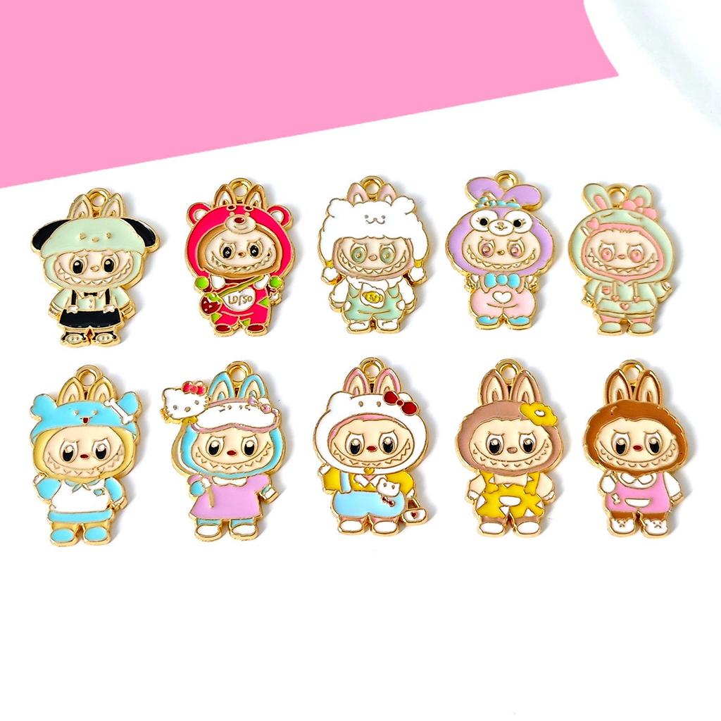 Cartoon Labubu Alloy Pendant: DIY Keychain, Necklace, Mobile Charm