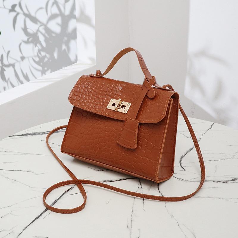 Stone pattern small bag, new fashion women's bag, shoulder messenger bag, retro casual small fresh lock small square bag