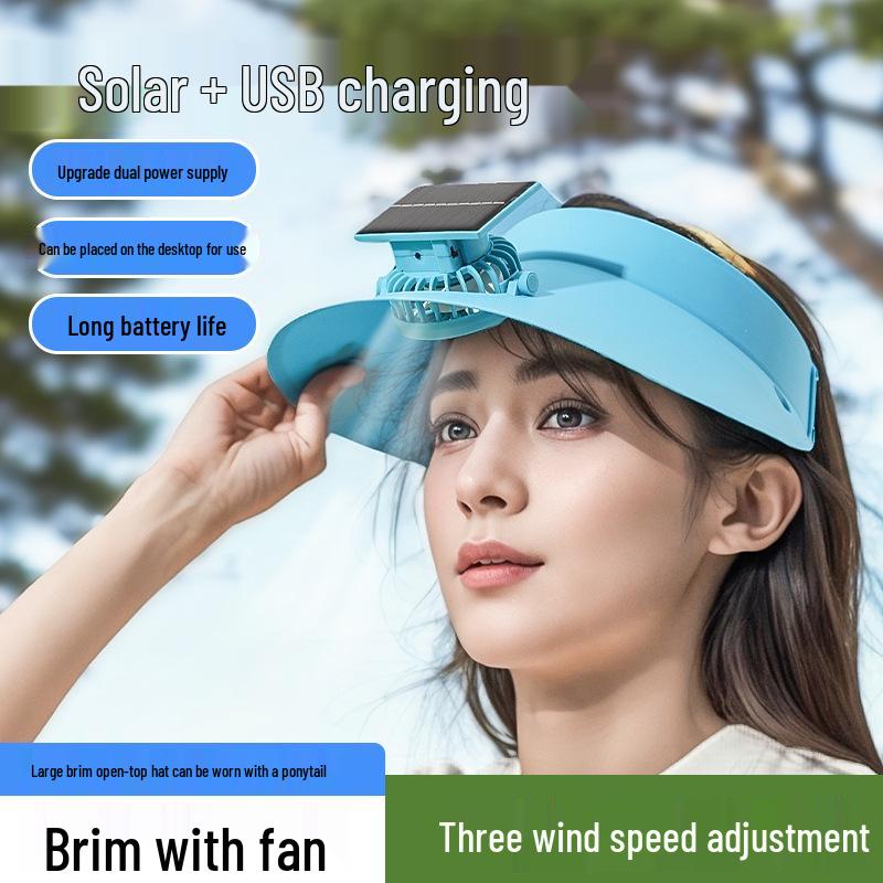 Rechargeable Solar Fan Sun Hat - UV Protection, Large Brim