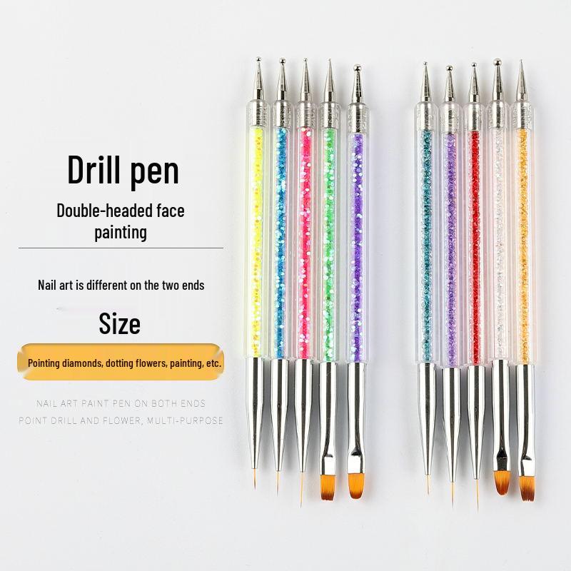 Nail Art Double-Ended Dotting & Painting Pen Set - 5 Colors for Flower & Line Designs
