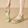 Small muffin thick-soled one-word sandals summer new 2025 Korean version fairy wind thin-strapped Roman sandals
