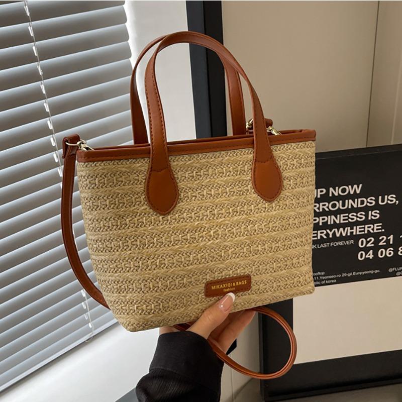 - **Structured Multi-Way Bag Details**: Features a stylish structured silhouette with straw woven material, leather trim detail, and versatile carrying options (handheld, single-shoulder, crossbody), exuding boho and summery charm. Multiple color options (Black, Brown) cater to diverse style preferences.