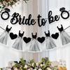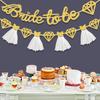 Decor de Nuntă European și American: Fustă Tulle 'Bride to Be' Banner Sclipicios cu Design Inel cu Diamant