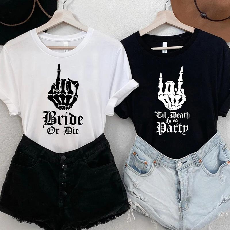 Punk Rock Bachelorette Party Blouse Team Bride or Die T-shirt Bridal Shower Wedding EVJF Tees Single Farewell Skull Graphic Tops