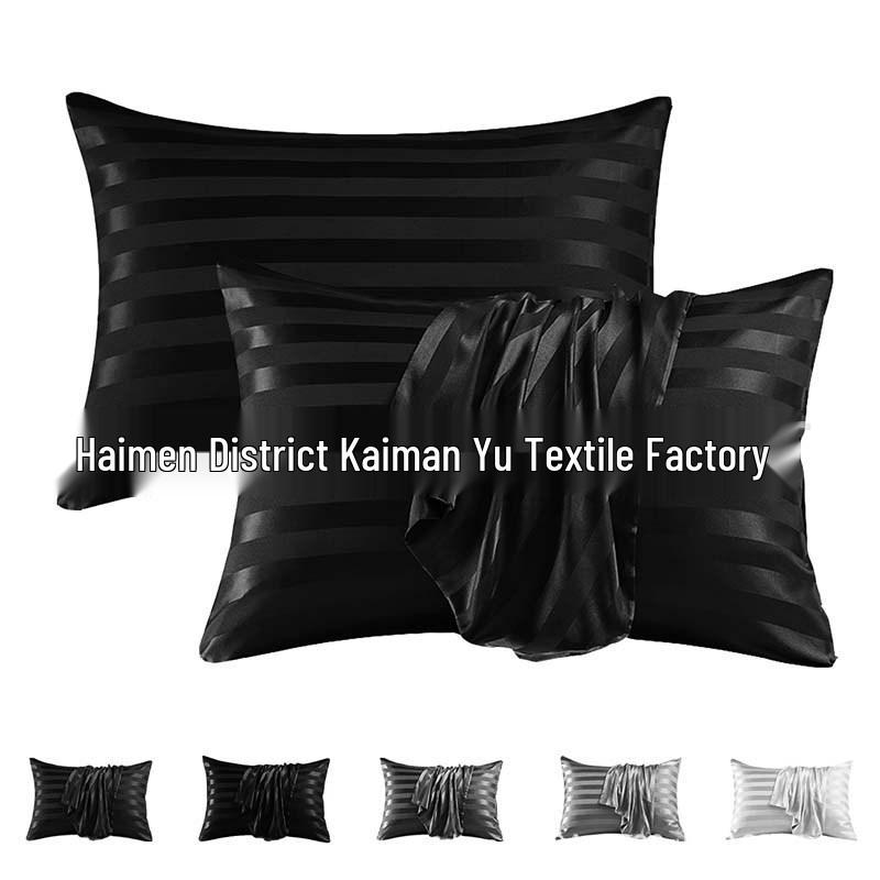 Față de pernă jacquard cu dungi satinate din imitație de mătase