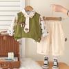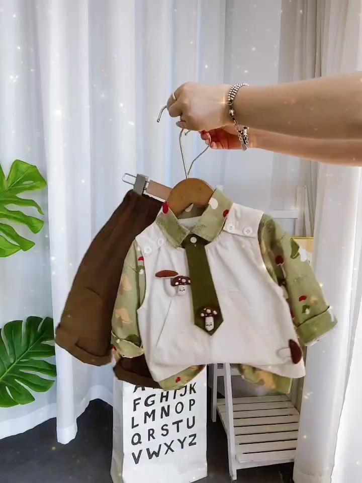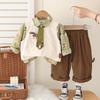 Boys' long sleeved three piece set, Cute vest for children aged 0-5, Collar tie shirt+casual pants set, High-quality clothes for babies