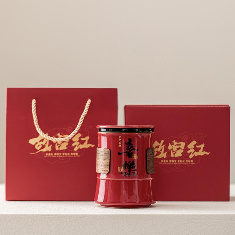 Year of the Snake Creative and Practical Gifts Forbidden City Red Ceramic Mug Tea Separation Annual Meeting Gift Box for Customers