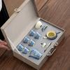 Ru Kiln Ancient Rhyme Kung Fu Tea Set Household Light Luxury High-end Ceramic Cover Bowl Teapot Teacup Complete Set High-end Gift Box