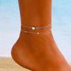 Brățară de gleznă cu inimă cu strat dublu, la modă în Europa și America - Bijuterie minimalistă de plajă pentru femei