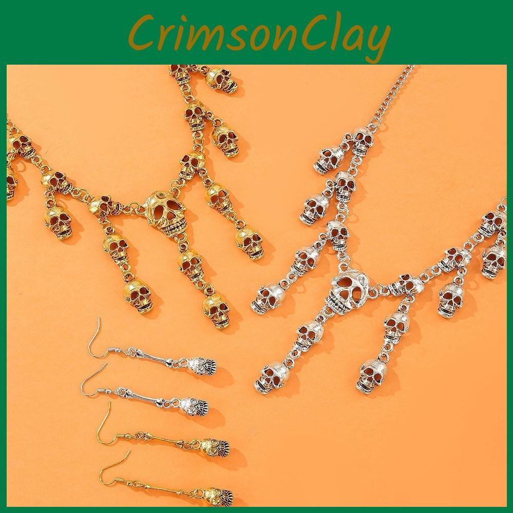 Colier Schelet Gotic și Set Cercei cu Material Aliaj Pentru Festivitățile de Halloween și Stil Alternativ