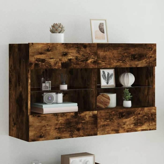 VidaXL Meuble TV avec Lumières LED, Armoire de Télévision Murale avec Étagères, Meuble Télé Suspendu Salon, Moderne, Chêne 837110