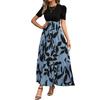 Rochie de vară cu gât rotund, mânecă scurtă, talie înaltă, rochie lungă cu aplicații, imprimeu cu frunze, tiv fluid, rochie maxi pentru purtare zilnică