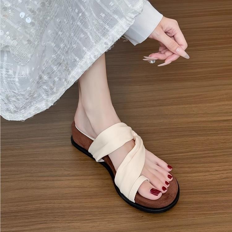 Sheepskin~ French round head cover toe cool slippers women's summer outer wear temperament with skirt thick sole with two sandals