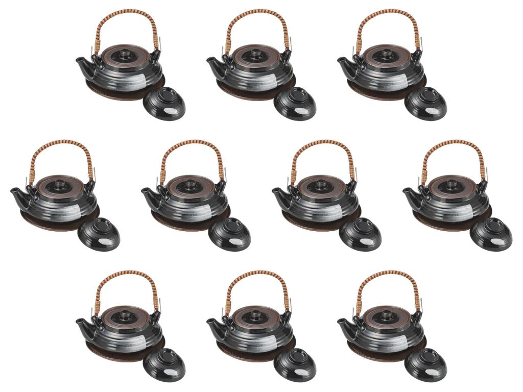 Set of 10 Tenmoku Flat Teapots x 5cm Teapots Made in China by Setomonohonpo [11.6 (240cc)]