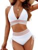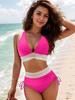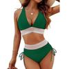 Women's Sexy Deep V Backless Solid Color Bikini Swimwear