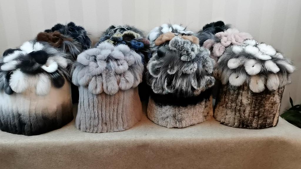 Căciulă Pufoasă de Iarnă din Blană Naturală Blană Naturală de Iepure Rex Căciulă Caldă Tricotată pentru Doamne Căciuli 100% din Blană Autentică