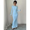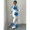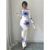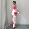 Rochie lungă sexy fără bretele cu mâneci lungi, slim, imprimată