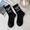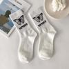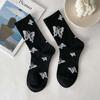 Șosete Dama Medii cu Tub cu Desen Animat Japonez Fluture - Negru și Alb, Stil Trendy de Primăvară/Vară cu Textură Terry.