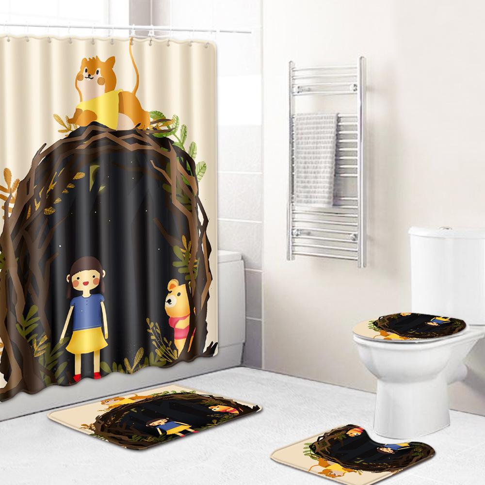 Healing Tree Hole Bathroom Shower Curtain Floor Mat Toilet Cover Foot Mat Four-Piece Set
