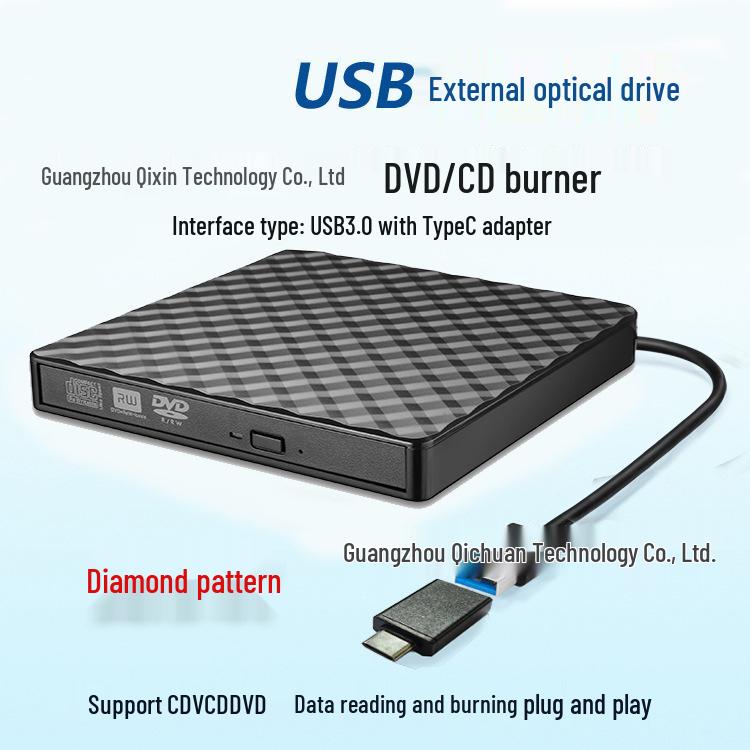 Unitate DVD externă USB/Type-C pentru laptop și desktop cu model diamantat - Unitate optică mobilă universală
