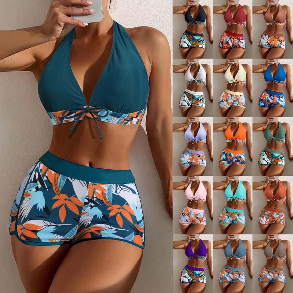 Acest costum de baie vibrant pentru femei prezintă un design cu imprimeu multicolor care adaugă o notă plină de viață colecției tale de plajă.. Fabricat din nailon de înaltă calitate, asigură confort și durabilitate pentru purtare de lungă durată.. Partea de sus și cea de jos a bikinilor sunt concepute cu un șnur convenabil, permițând ajustări ușoare și o potrivire personalizată.. Croiala dreaptă a pantalonilor de baie îți complimentează silueta naturală, oferind o experiență de înot măgulitoare și confortabilă.. Perfect pentru zilele însorite la piscină sau la plajă, acest costum de baie combină stilul și funcționalitatea fără efort.