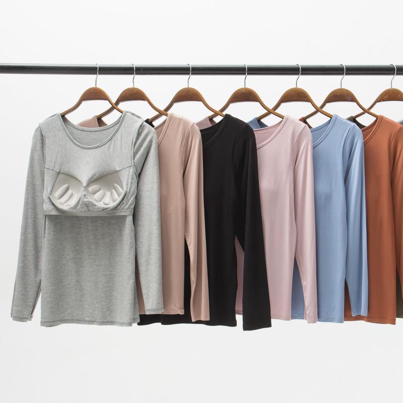 This versatile long-sleeve women's base shirt is designed for both comfort and functionality, featuring integrated chest pads for additional support without the need for an underwire. Crafted from high-quality modal material, it provides a soft and luxurious feel against the skin. Suitable for the cooler autumn and winter months, this shirt serves as both outerwear and sleepwear, offering warmth and style. The sleek design and long sleeves make it a perfect layering piece for various occasions.