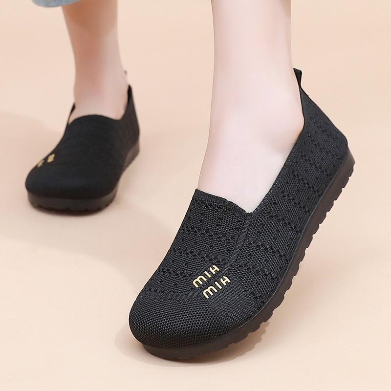 Shoes Women's Cloth Shoes Flying Weaving Fashion Breathable Non-slip Lightweight Women's Shoes Casual Mom Shoes Flat Single Shoes