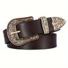 Ladies' Western Denim Retro Three-piece Set, Versatile Genuine Leather Cowhide Coat, Denim Pants, Belt and Leather Strap