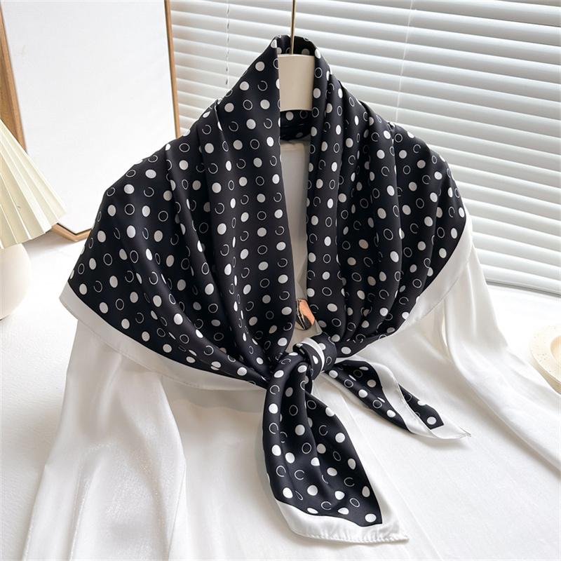 Luxury Korean Fashion Polka Dot Print Silk Scarf 90cm Twill Scarves Letter Circle Large Square Scarf New Shawl Headscarf