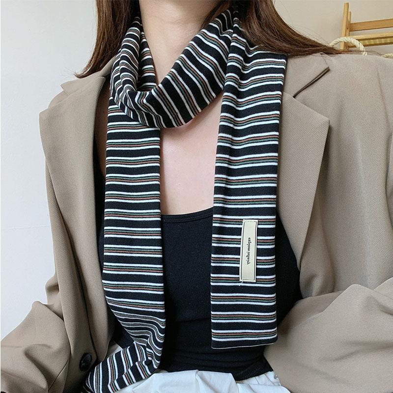 Vintage Sweet And Cool Girl Thin Scarf Y2k Millennium Niche Fashion Versatile Decoration Striped Knitted Cotton Narrow Neck