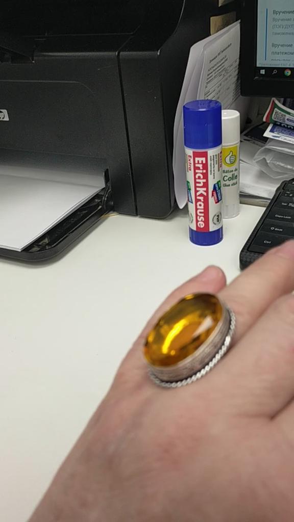 Un inel frumos, imens, cu o piatră galben strălucitor, recomand.