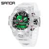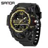 SANDA Tehnologie Neagră Afișaj Dual Rezistent la Apă Ceas de Mână Casual pentru Adolescenți cu Alarmă