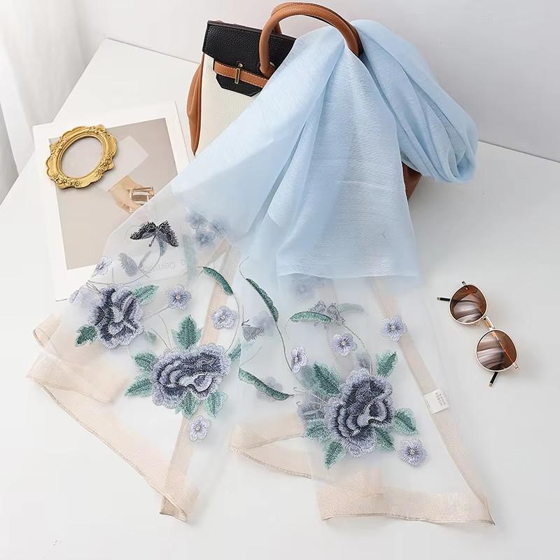 Silk wool scarf women hijab pashmina shawls wrap Luxury Bandana Blanket Floral Pashmina Embroidery Scarves Foulard high quality