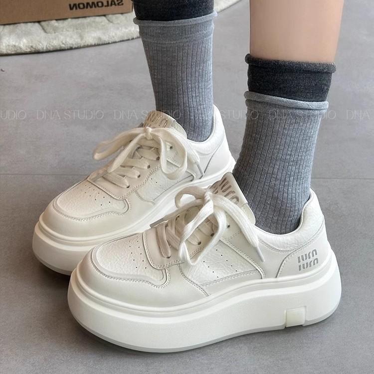 Leather platform white shoes women's shoes 2025 new versatile sports and leisure shoes heightening lace-up lightweight lace-up board shoes