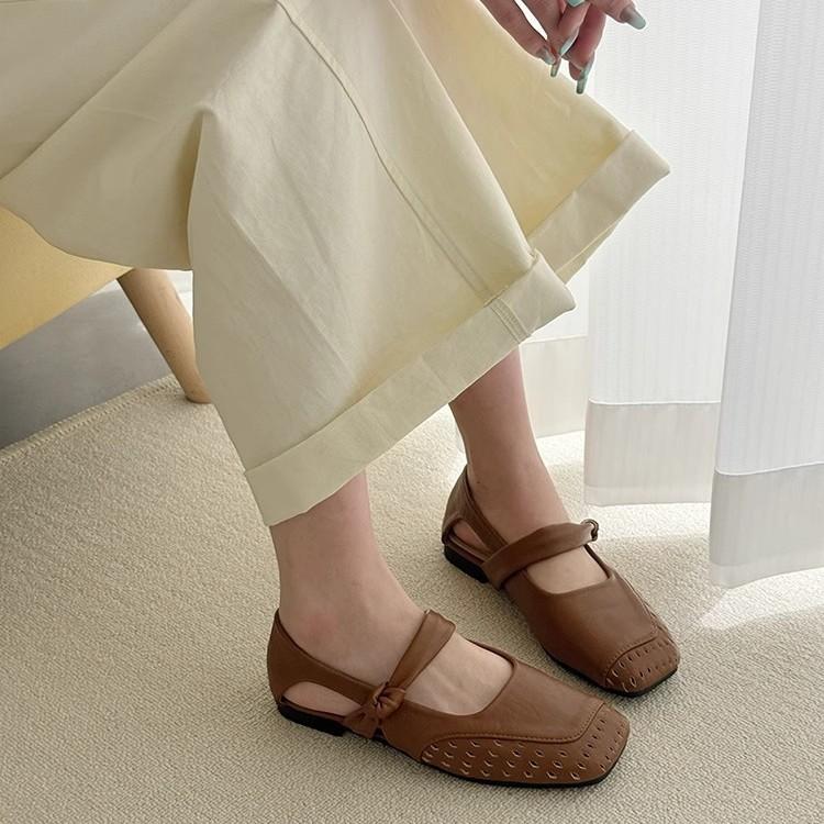 Soft-soled Mary Jane sandals women's 2025 summer shallow mouth hollow hole ballet flats French small single shoes tide