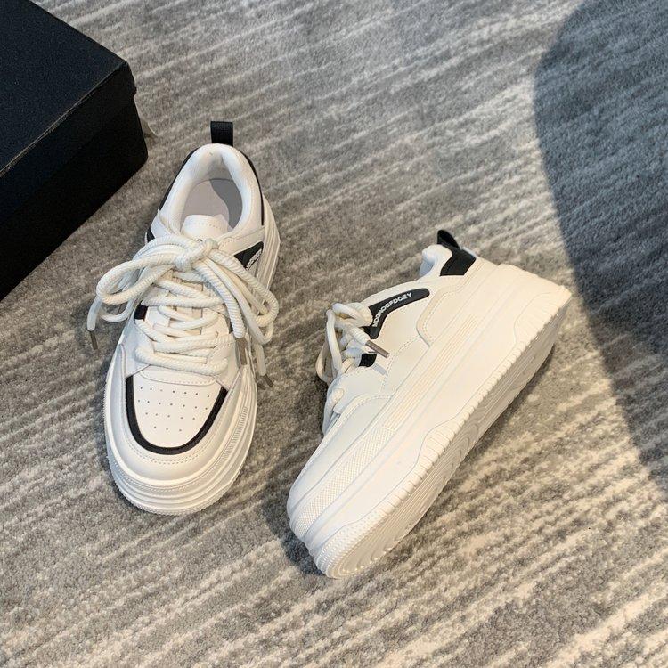 Leather platform white shoes women's 2025 spring new versatile casual height increase breathable single shoes student sports board shoes