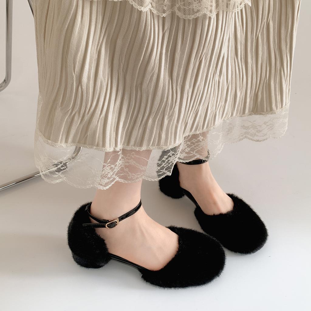 Pantofi retro negri cu toc gros înalt, pufoși, pentru exteriorul femeilor, 2025 nou toamnă, fustă versatilă, pantofi Mary Jane