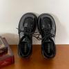 Black British style round head thick high heel platform small leather shoes women's 2025 new summer versatile soft-soled loafers