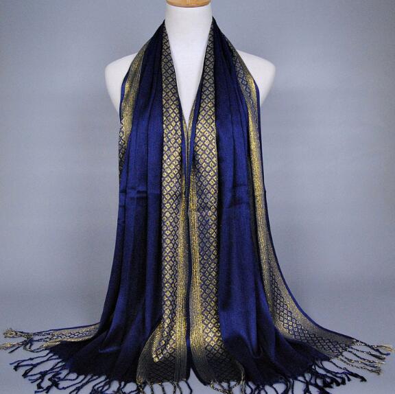 Brand de Lux Eșarfă Musulmană Aurie cu Sclipici Hijaburi Eșarfă de Cap Arabă din Orientul Mijlociu Batic Islamic din bumbac Bandană