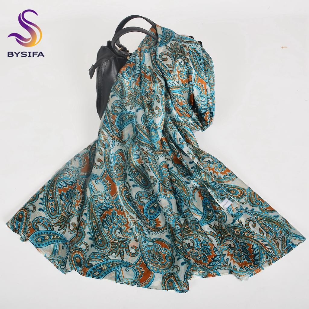 Ultralarge Blue White 100% Mulberry Silk Scarf Beach Wrap Brand Female Long Scarves New Paisley Design Silk Scarf Shawl