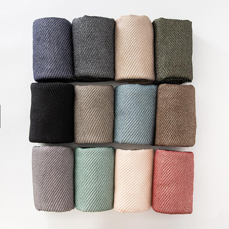 Women's Pleated Scarf Crinkle Cotton Long Muffler Crumpled Shawl Femme Hijab Golden Thread Shimmer Muslim Hijab