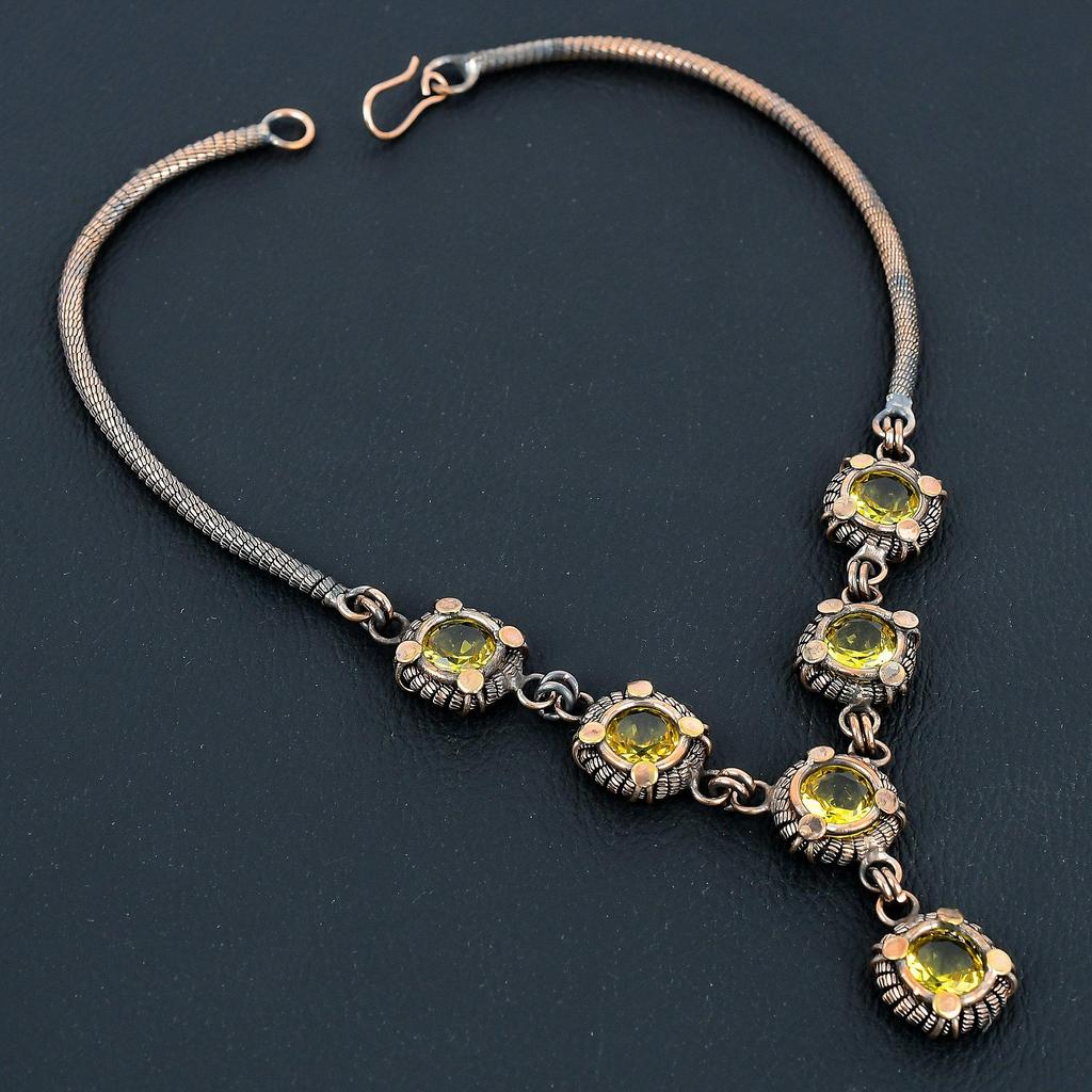 Lemon Topaz Designer Necklace, 999 Copper Wire Wrapped Necklace, Adjustable Chain Necklace, Handmade Necklace For Memorial Day