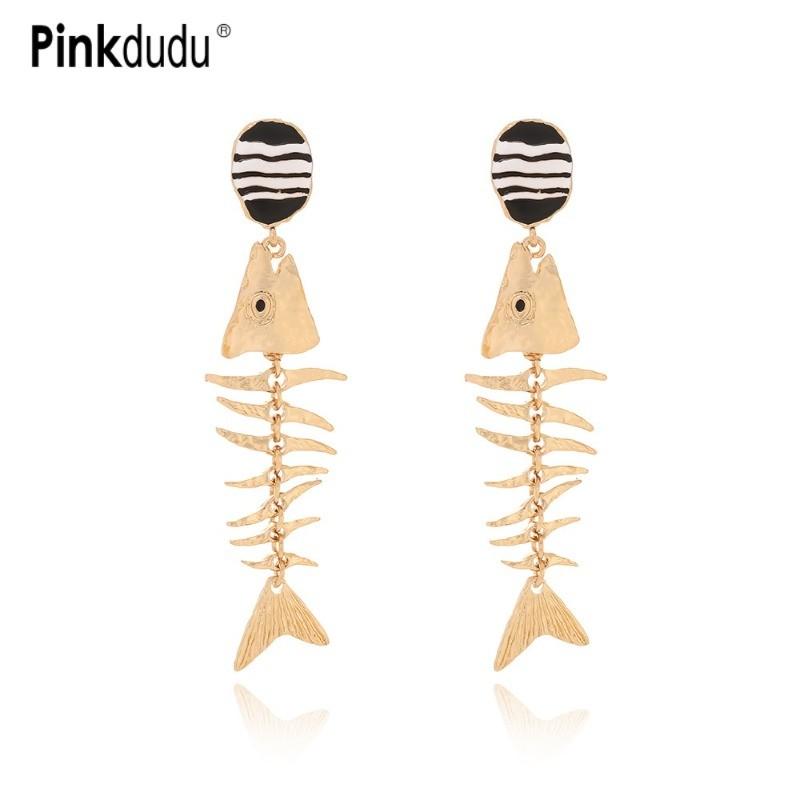 Pinkdudu Vintage Exaggerated Fish Bone Zinc Alloy Earrings Trendy Drop Earrings Women Jewelry PD2391