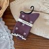 Female Spring and Autumn Sweet Flanging Bow Berry Purple Lattice Boneless Tube Pile Socks