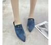 European and American washed denim flat-bottomed bag head slippers women wear large size pointed Mueller half drag single shoes wish