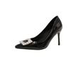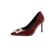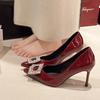 Hong Kong square buckle high heels women's thin heels red work shoes pointed single shoes 2025 spring new temperament Muse Fan
