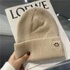 Devil smiley face label wool hat women's autumn and winter warm trend versatile ear protector black knitted hat