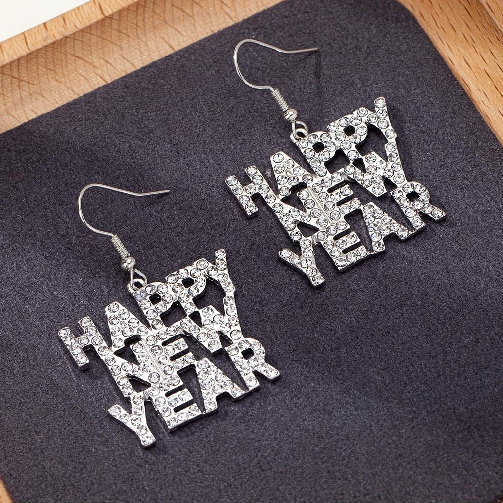 A Pair Of Simple Classic Letters Happy New Year Trendy Fashion And Versatile Women's Earrings