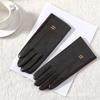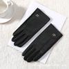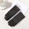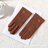 Warm leather gloves women cute velvet winter thickened outdoor riding windproof and cold driving touch screen gloves