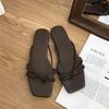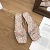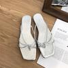 Spring 2025 new flat-bottomed cool slippers square-headed fairy style with skirt strap cover toe silver sandals women's shoes